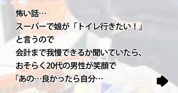 【※注意喚起】スーパーで娘が「トイレ行きたい!」と言うので会計まで我慢できるか聞いていたら、20代位の男性が声をかけてきて…