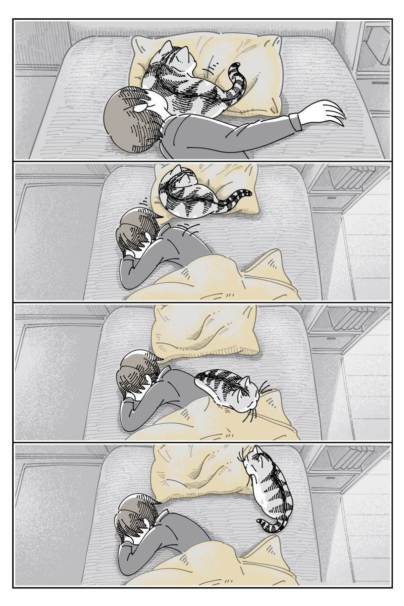 寝返りを追いかけるネコとの日常…かわいいけどw