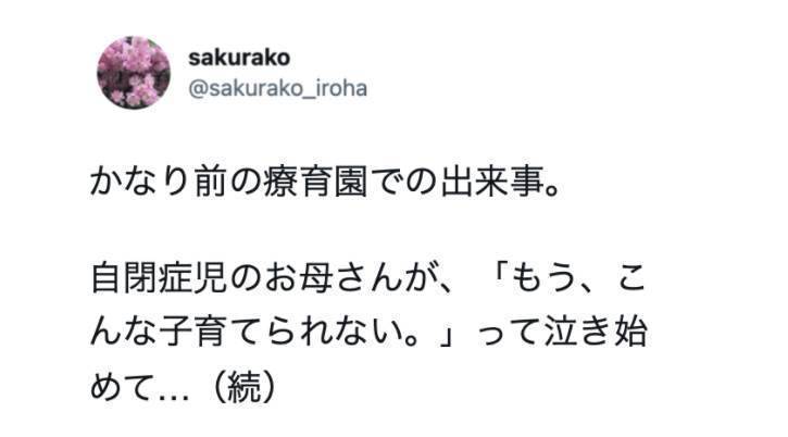 「こんな子育てられない」と泣き始めた自閉症児の母親。するとダウン症児の母親がこう言った・・・
