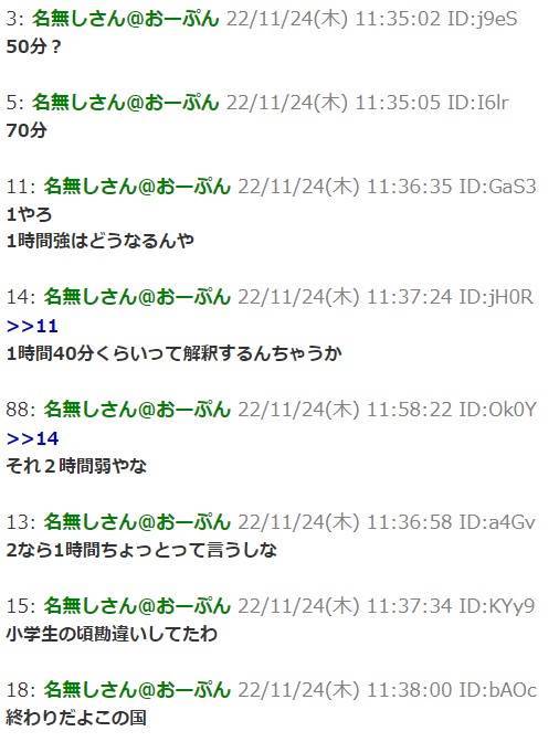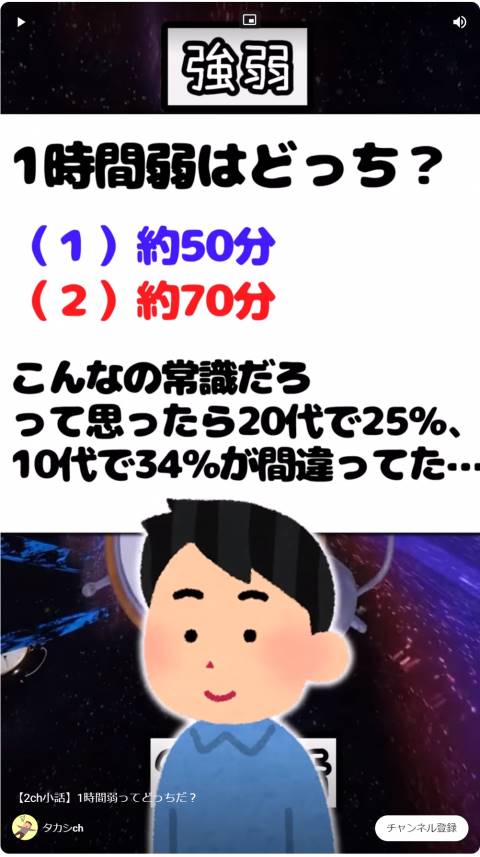 【悲報】問題「1時間弱はどっち?(1)約50分 (2)約70分」→20代の25%が間違えるwwwwwwwwwwww