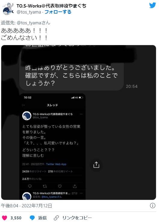 とても容姿の整った女性からの営業を断った投稿者さん。