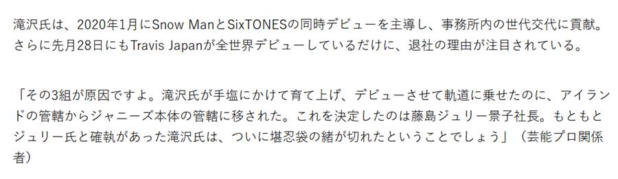 滝沢秀明氏、ジャニーズ内で確執?退社の理由にからむのは3組のデビューグループか