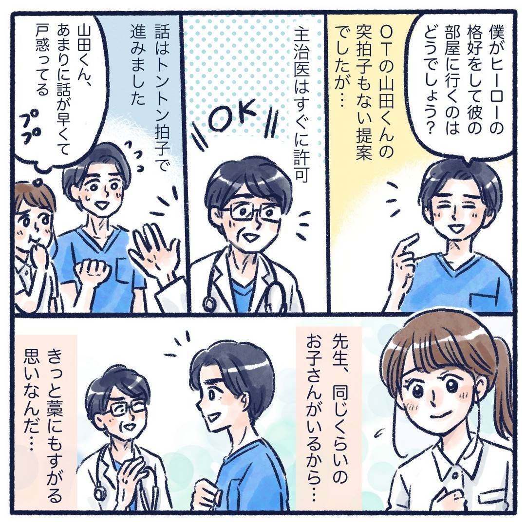 僕がヒーローの格好で彼の部屋に行くのはどうでしょう?」OTさんの提案はトントン拍子に進み…