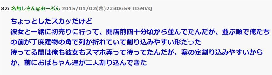 初売りの列に並んでたらオバちゃんに割り込みされた!俺「俺が言おうか」彼女『いや、放置でいい。まあ見てて』 → すると・・・