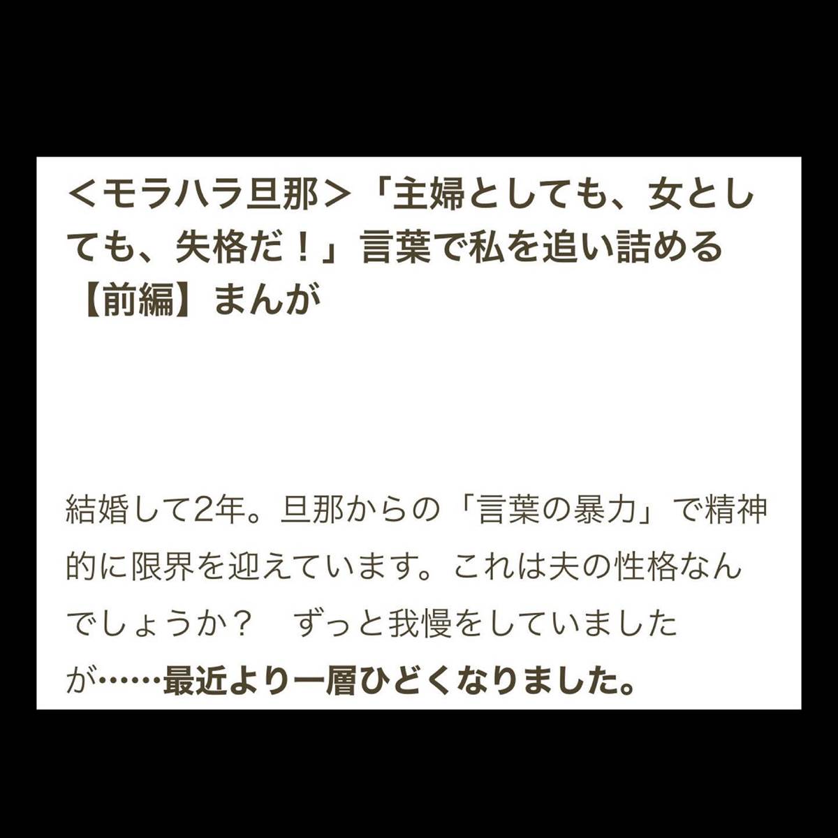 <モラハラ旦那>「主婦としても、女としても、失格だ!」言葉で私を追い詰める【前編】