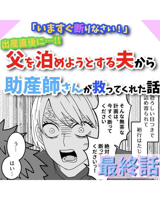 『いますぐ断りなさい!』出産直後に義父を泊めようとする夫を助産師さんが救ってくれた話【最終話】