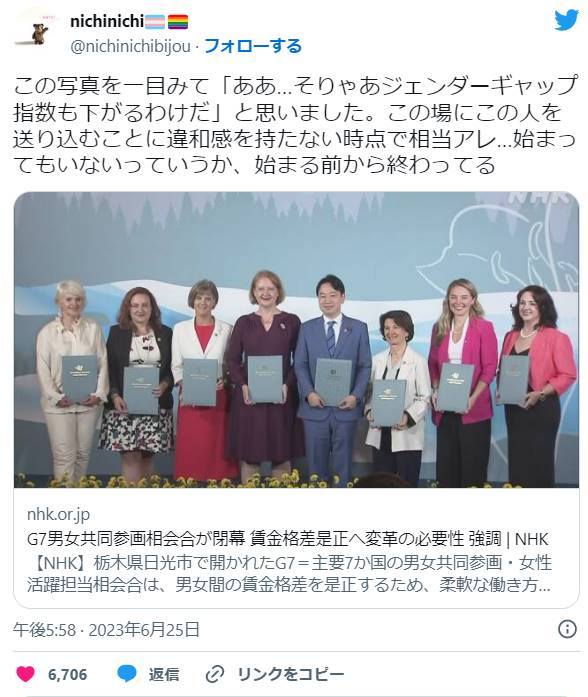 【画像】男女平等を表す「ジェンダーギャップ指数」、なぜ日本が146カ国中125位なのか → その理由が誰でも一発でわかる写真がこちら…