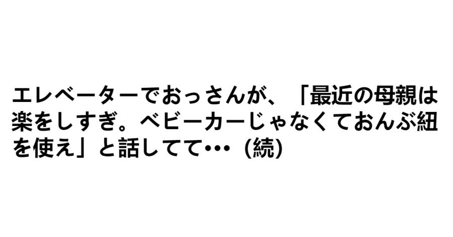 知らないおじさんが突然…「最近の母親は楽しすぎ。ベビーカーじゃなくておんぶ紐を使え!」これを聞いたおじさんの奥様が…(-_-メ)ゴラァァァ!!