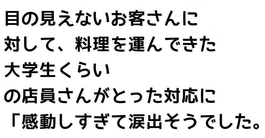 目の見えないお客さんに対して、料理を運んできた大学生くらいの店員さんがとった対応に「感動しすぎて涙出そうでした」