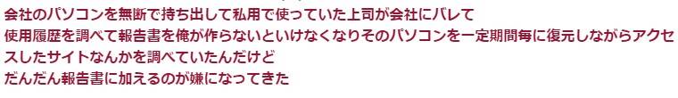 上司が会社のパソコンを無断で持ち出し私用で使っていた。会社「俺くん、使用履歴を調べて報告書作成して」俺「はい(パソコンを復元)」→トンデモナイことが発覚した