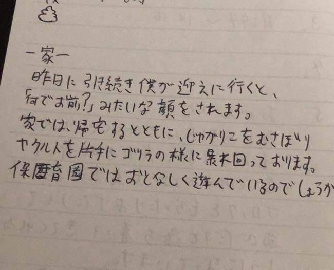 保育園の連絡ノートを旦那に書かせた結果・・・これは笑うでしょう(笑)!