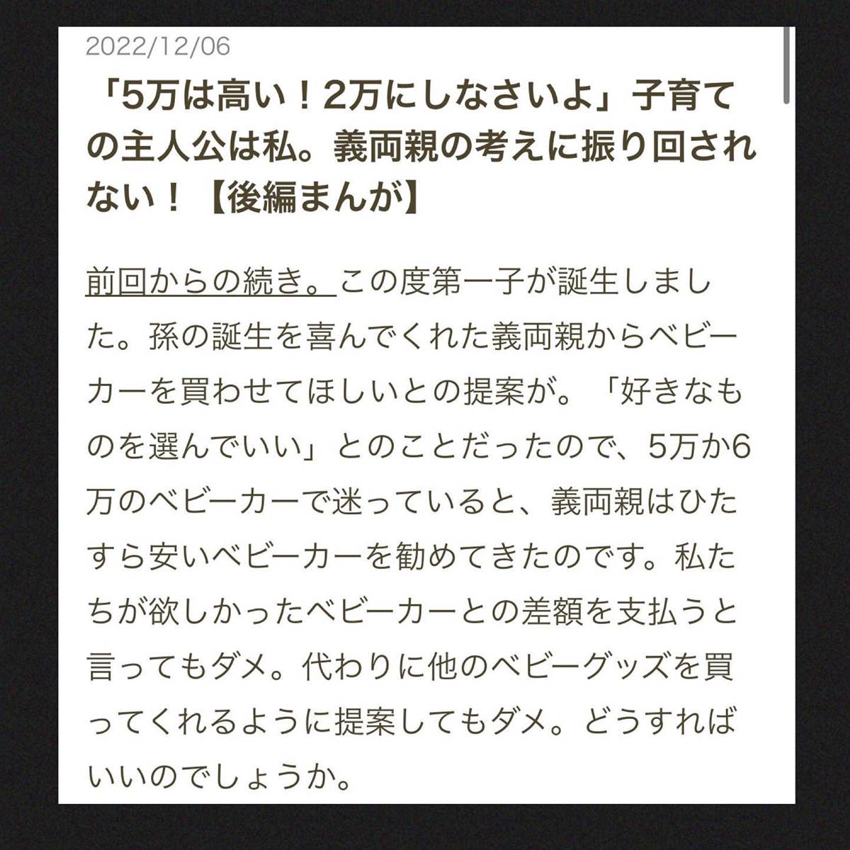 【5万は高い!2万にしなさいよ】子育ての主人公は私。義両親の考えに振り回されない!