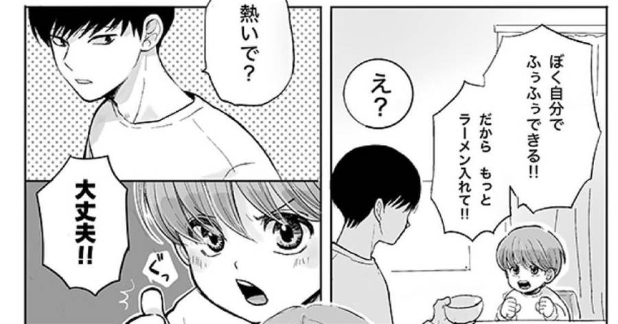これまでずっとニイニがふぅふぅして冷ましていた、オトト君のラーメン。「自分でできる」と言われて、ニイニは…