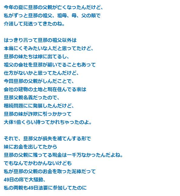 子供が病気で、脳梗塞の良ウトの介護にまで手が行かなかった時に元看護師のBが助けてくれる事に。ところが、コトメが「お金の無駄」「遺産が減る」と言ってBを出禁に。結果…