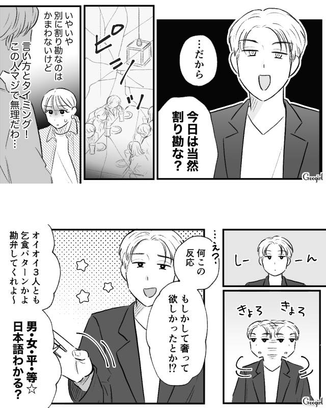 『当然、割り勘な?』合コンで出会った勘違い平等男が大炎上した話【第3話】