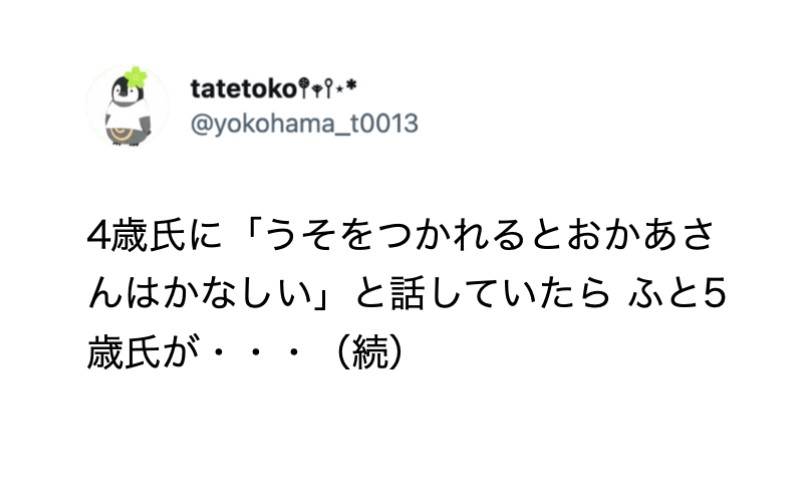 4歳児に「嘘をつかれると悲しい」と伝えると隣にいた5歳児からこんな事を聞かれて・・・うぅぅ・・