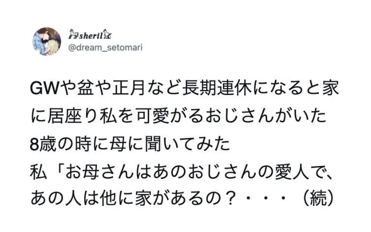 長期連休になると家に来るおじさん。母の愛人かと思っていたら・・・