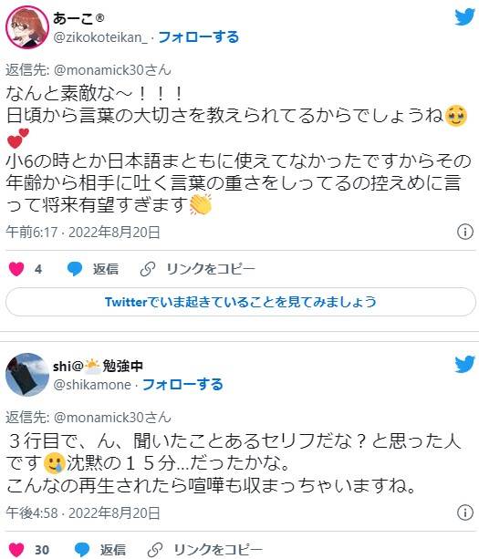 とあるご夫婦が口喧嘩をしていたところやってきた小6の息子さんが伝えてきた言葉がグサグサと刺さります・・・