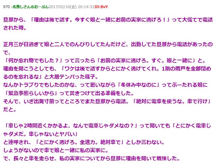 【ゾッと…】正月だってのに仕事中の旦那から電話が。出てみれば「今すぐお前の実家に逃げろ」とな。さらには「電車は使うな。車で行け」と。何があったの…→原因は超DQNなコトメ一家