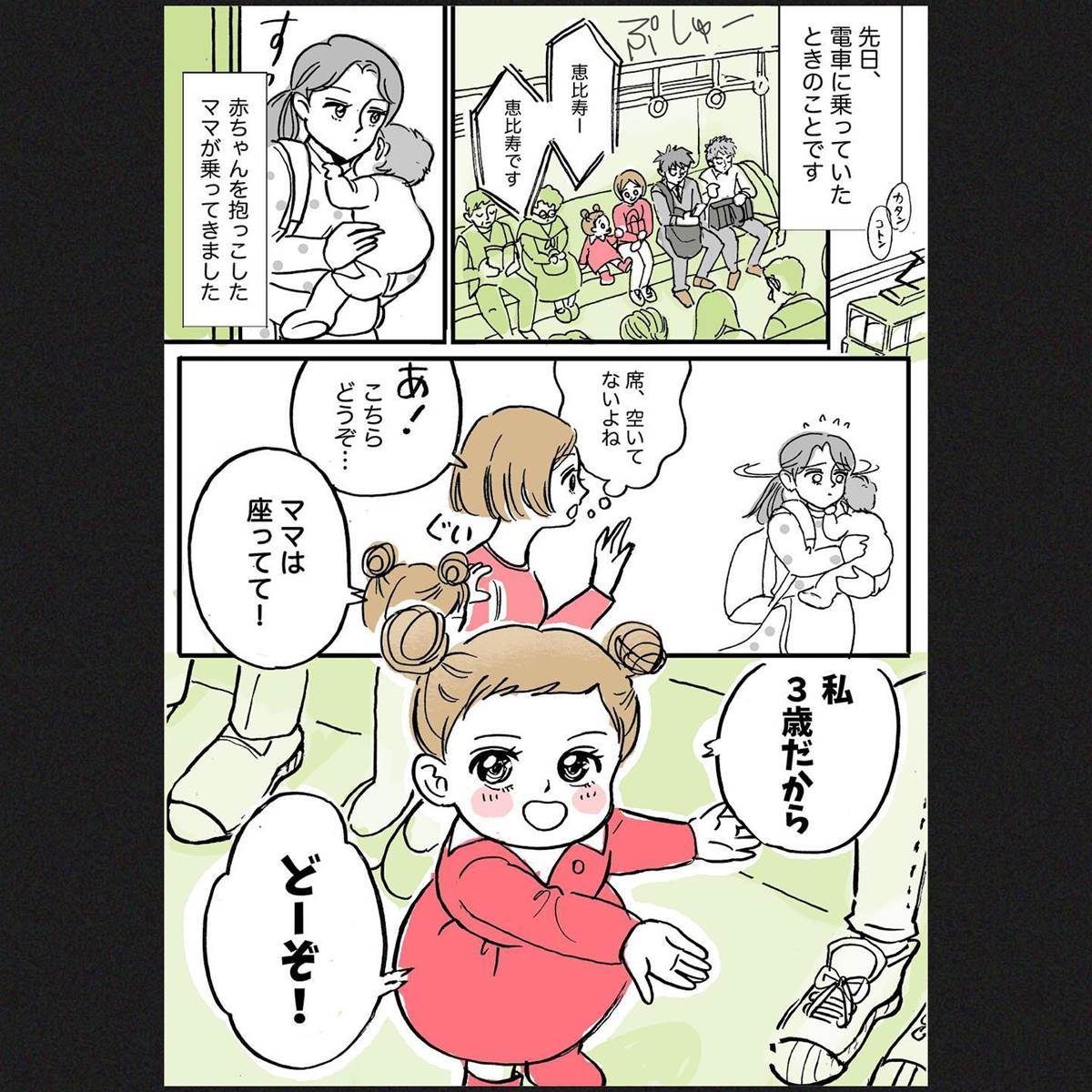 <ほっこり>優しさは優しさを生む。「どーぞ」車内で席を譲った3歳の娘