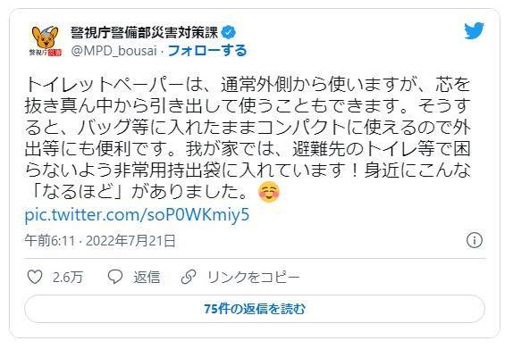 警視庁がトイレットペーパーにまつわる便利技をツイート。