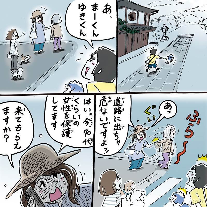 認知症の奥様を守る3頭の犬、道の真ん中で繰り広げられた驚きの瞬間