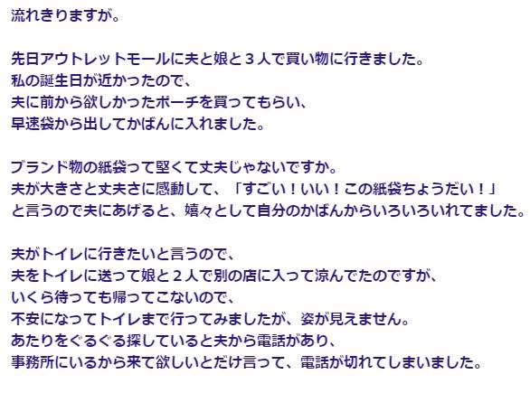 【修羅場】アウトレットモールで娘にポーチを買った旦那→娘「ありがと~!袋から出してかばんに入れるわ」旦那「すごい!いい!この紙袋ちょうだい!」→結果、大変な事態が発生!