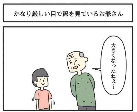 かなり厳しい目で孫を見ているお爺さん