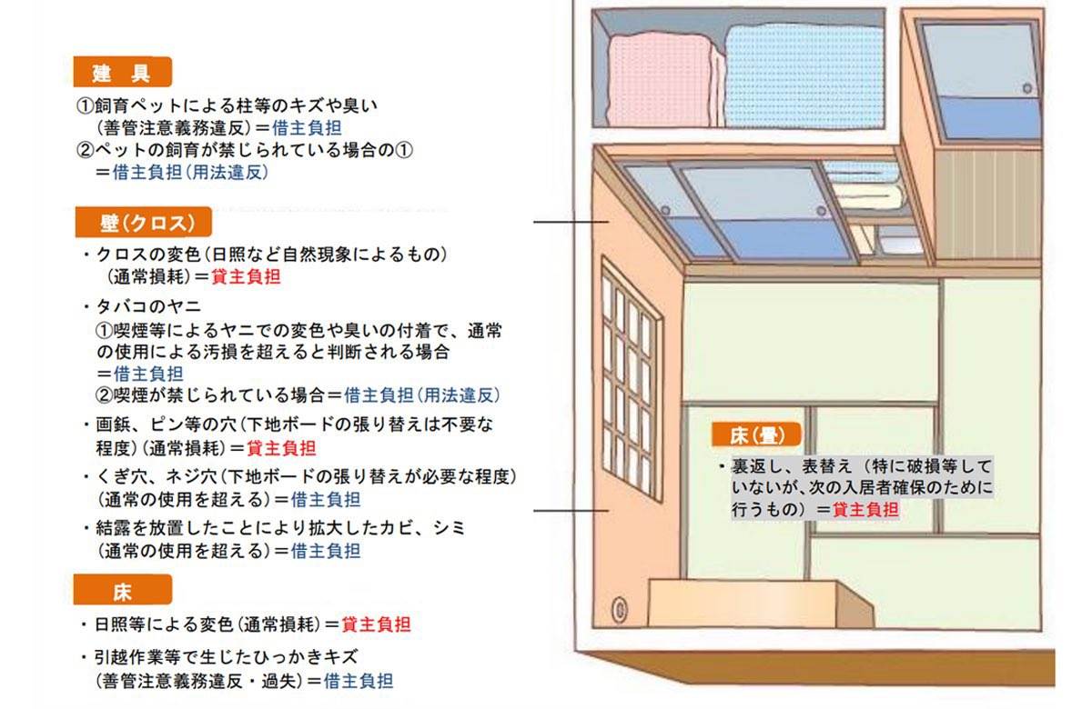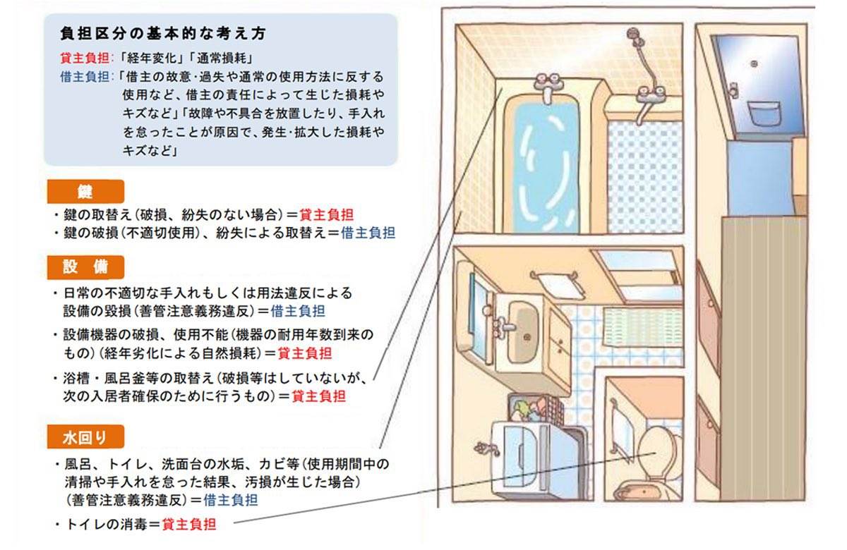 賃貸退去時費用の負担についてはこの画像にまとまってます。