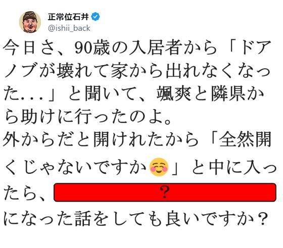 【クイズ】90歳「ドアノブが壊れて家から出れない」→ 救出に向かった結果…