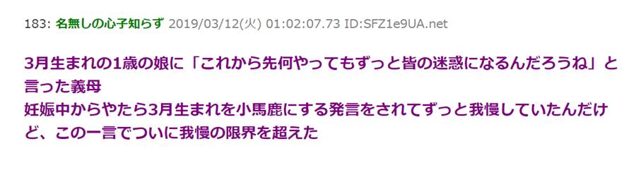 3月生まれの1歳の娘に「ずっと皆の迷惑になるんだろうね」と言った義母。ウトが〆ても「私は小学校教諭をしてたから分かるんだけど、3月生まれの子はね…」