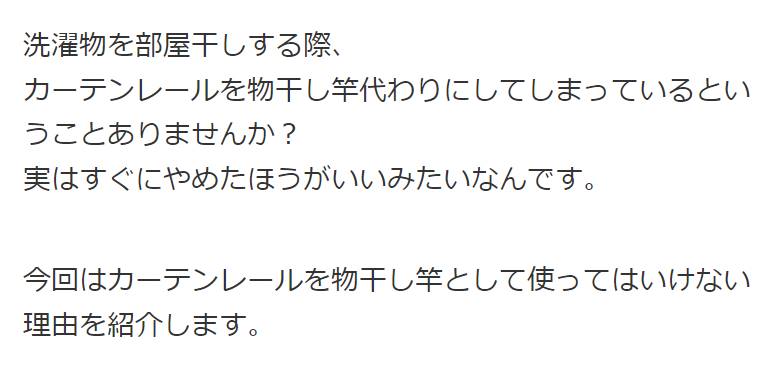 カーテンレールを物干し竿として使ってはいけない理由…やってたらすぐにやめて下さい…