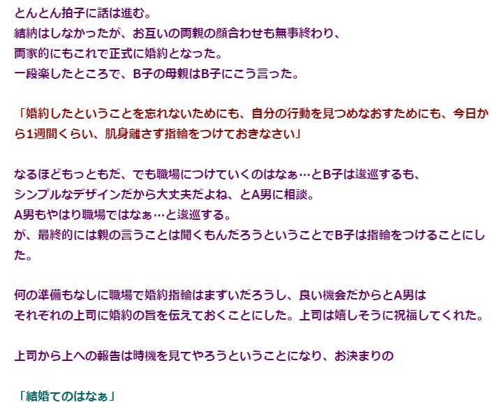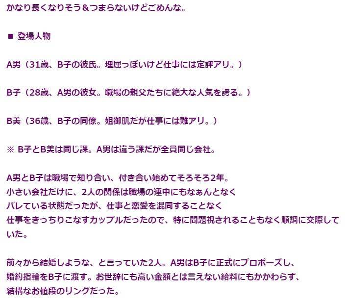 会社のデスクの引き出し(鍵付き)に入れて置いた婚約指輪がなくなった、→私「あれ!鍵穴に何か挟まってる!これは...まさか..」→驚愕の思考回路...