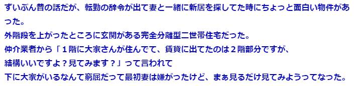 【衝撃】1階に大家、2階が賃貸の家に5年ほど住んだ → 大家の娘「えっ…とっくに知っているものだと…」俺「いや…(ゾッとした…)」