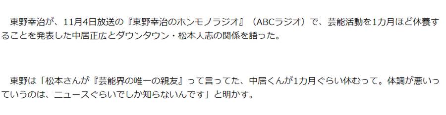 松本人志が中居正広と「忘年会の約束」で応援の声続々…東野幸治が明かした中居は松本の「芸能界唯一の親友」