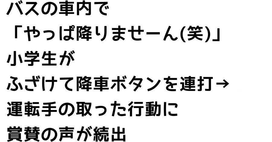 バスの車内で「やっぱ降りませーん(笑)」小学生がふざけて降車ボタンを連打→運転手の取った行動に賞賛の声が続出...