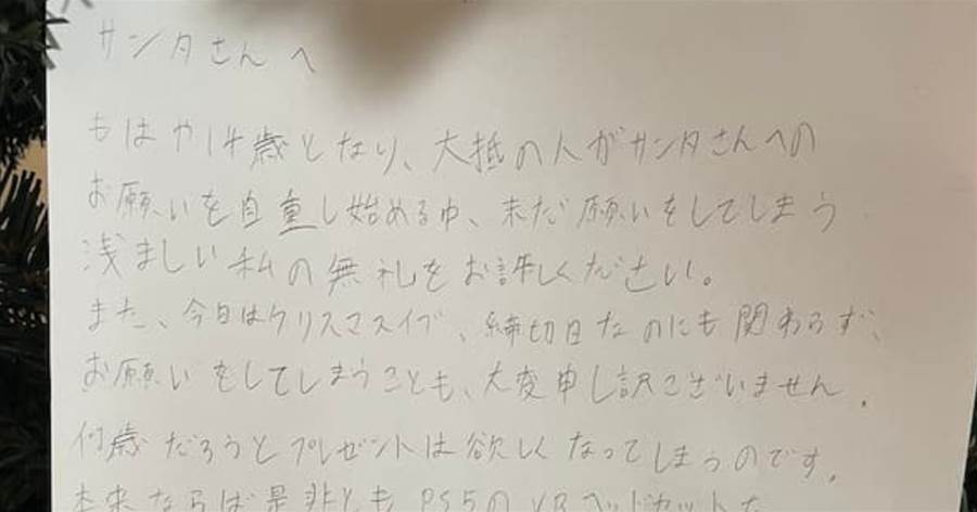 14歳のサンタさんへの手紙「本来ならPS5のVRヘッドセットをお願いしたかったのですが・・・」が秀逸すぎる!