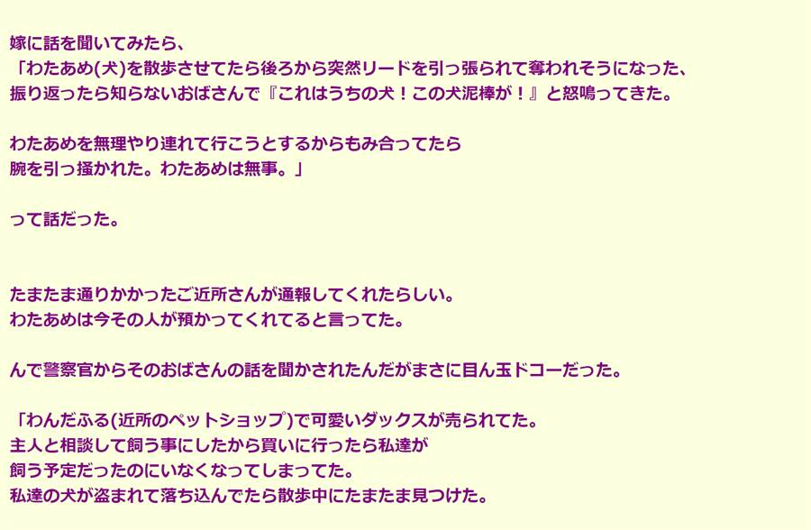 腕にデカイ絆創膏貼った嫁と警察官2名