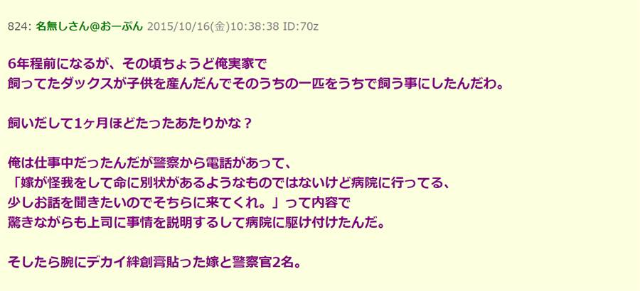 警察から電話「奥さんが怪我で病院にいます、お話を聞きたいので来て下さい」 →病院に…腕にデカい絆創膏貼った嫁&警官2名 →目ン玉ドコーなまさかの展開に・・