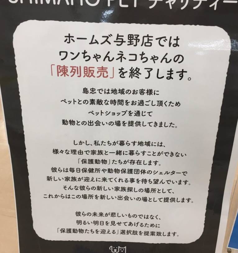 とあるペットショップのお知らせに反響!「陳列販売を終了します」に続くメッセージを読んで欲しい