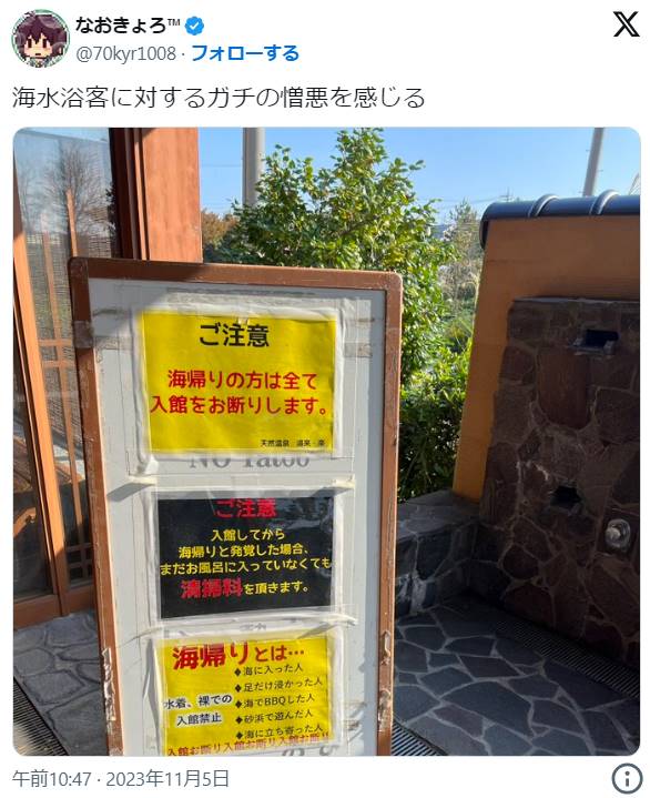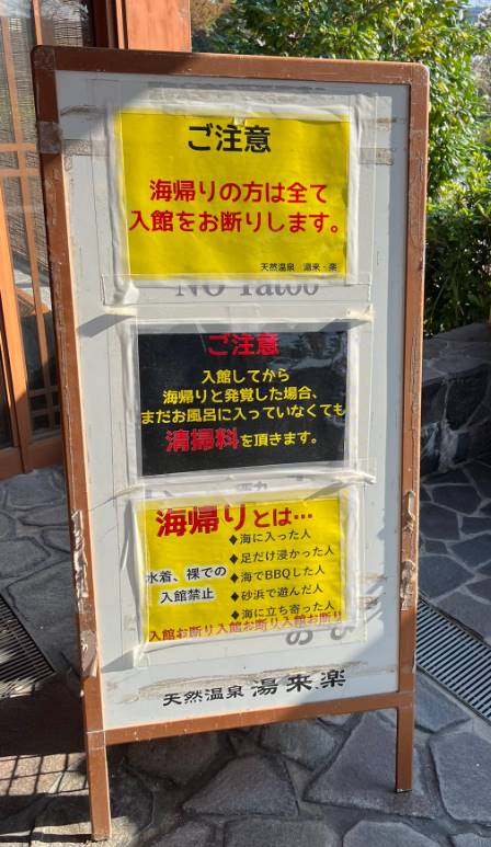 【画像】温泉施設さん、海帰りの客に対し憎悪MAXの対応をしてしまう…