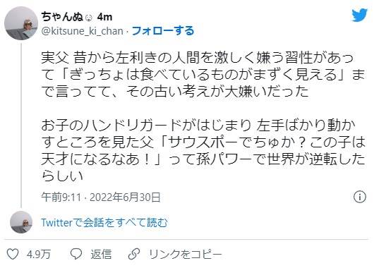 左利きの人間を激しく嫌っていた父。孫が左手ばかりを動かすのを見て・・・