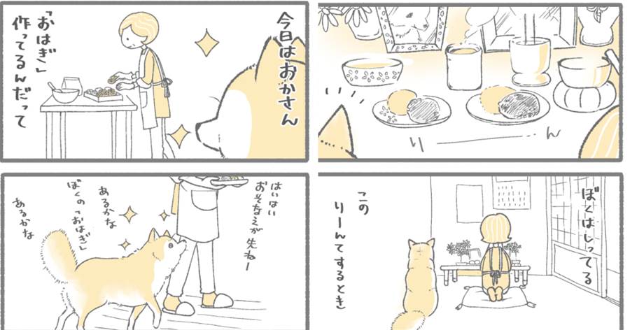 【いぬ漫画】お彼岸てなに?おはぎに擬態するわんこたち。お母さんに寄り添う優しい気持ちに涙が..