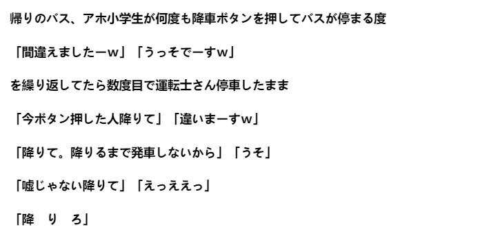 帰りのバス、アホ小学生が何度も降車ボタンを押してバスが停まる度