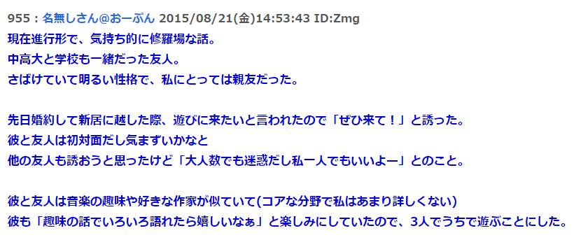親友「遊びに行ってもいい?」 私「いいよ!」 → 親友と婚約者を会わせた結果…