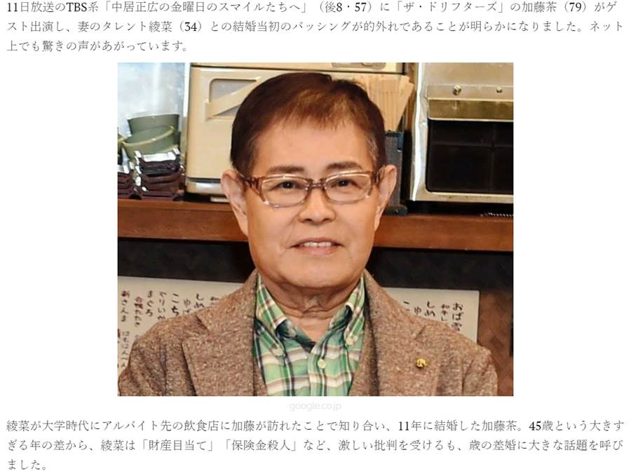 加藤茶の妻・綾菜、「財産狙い」批判されるも実はお嬢様だった。父親はやり手の実業家「俺の方が逆玉なんだよ」