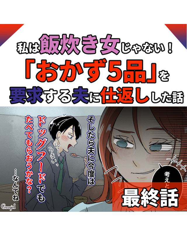 私は飯炊き女じゃない!『おかず5品』を要求する夫に仕返しした話【最終話】