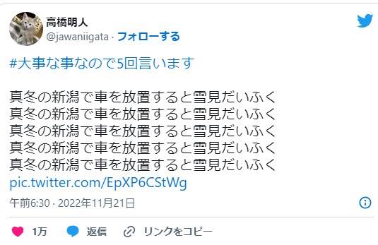 ハッシュタグ『大事な事なので5回言います』で話題になっていた新潟に関するツイート。