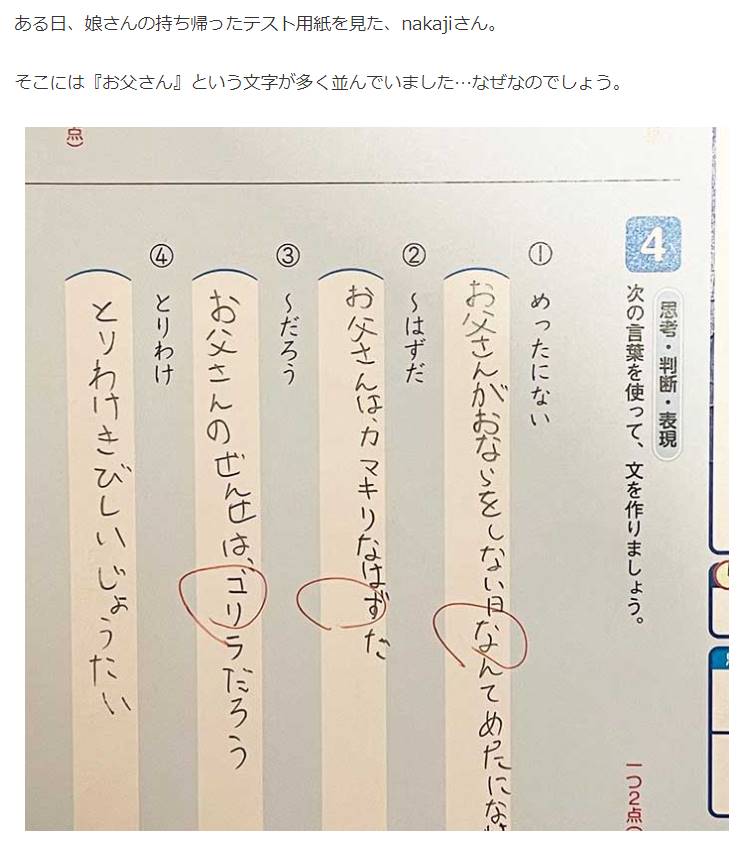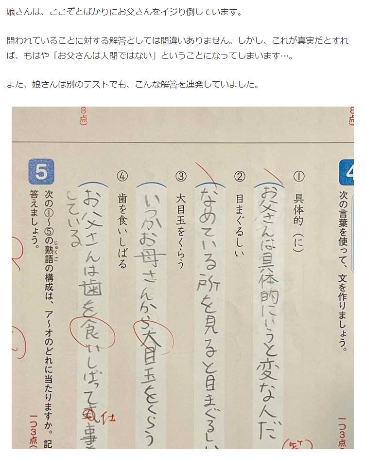 「お父さんは何者?」娘のテストの解答が正解なのに笑ってしまう理由とは?
