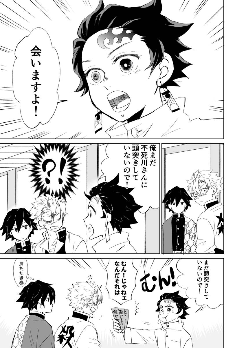 サヨナラのかわりに。 204話最後の柱合会議後かな。 炭治郎と実弥にいちゃんと義勇さん。